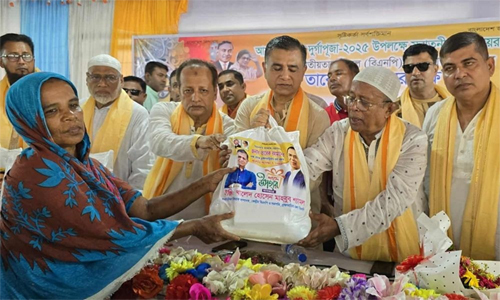বাংলাদেশ পূজা উদযাপন ফ্রন্টের যুগ্ম আহ্বায়ক পলাশ ভট্টাচার্যের সভাপতিত্বে আয়োজিত অনুষ্ঠানে উপস্থিত ছিলেন বিএনপির কেন্দ্রীয় কমিটির অর্থনৈতিকবিষয়ক সম্পাদক ও জেলা বিএনপির সভাপতি প্রকৌশলী খালেদ হোসেন মাহবুব শ্যামল, জেলা বিএনপির সিনিয়র সহ-সভাপতি জহিরুল হক খোকন, সাবেক সভাপতি হাফিজুর রহমান মোল্লা কচি, সহ-সভাপতি এ বি এম মমিনুল হক, আলী আজম, সমীর চক্রবর্তী ও আশীষ পালসহ প্রমুখ।